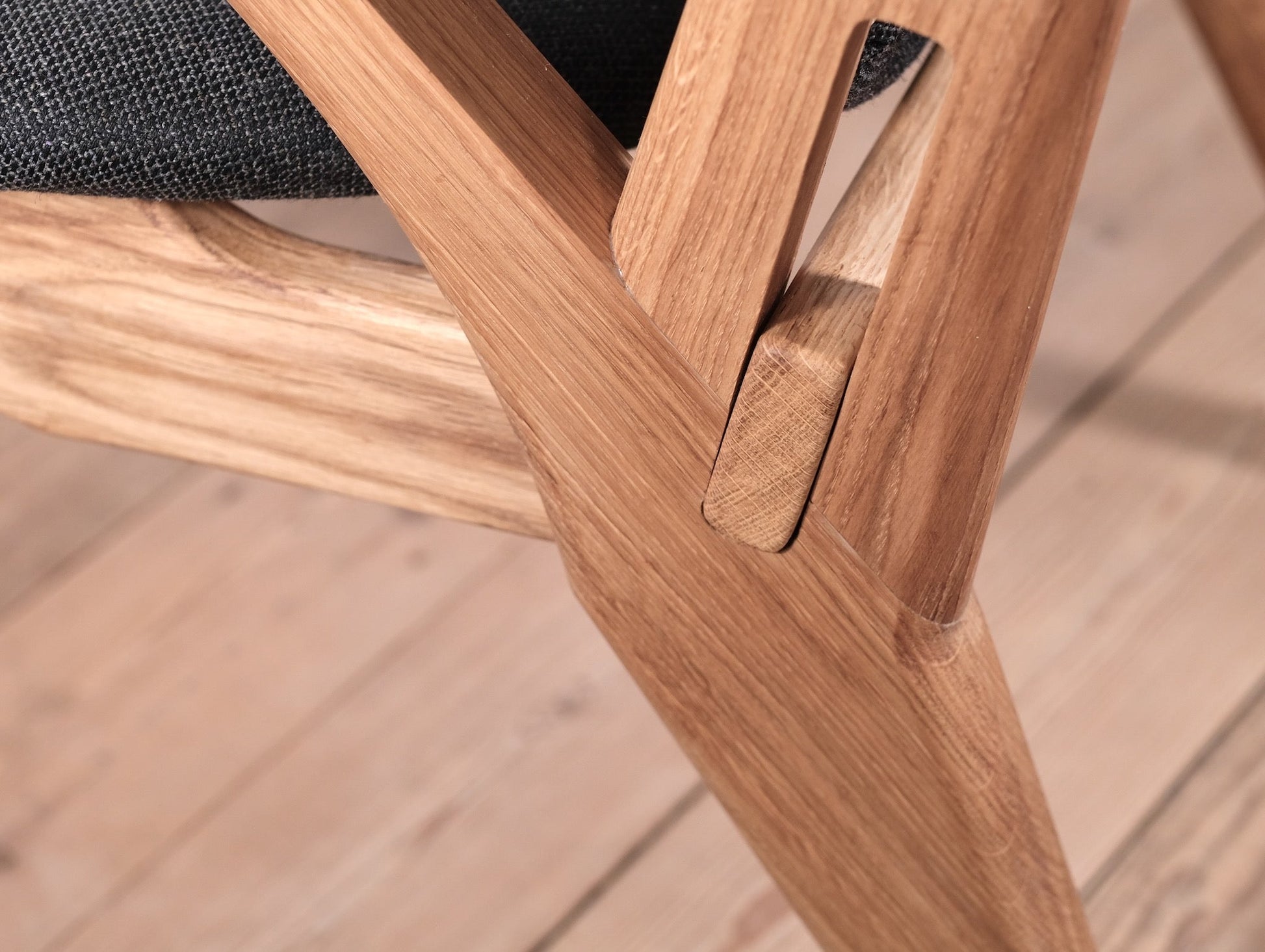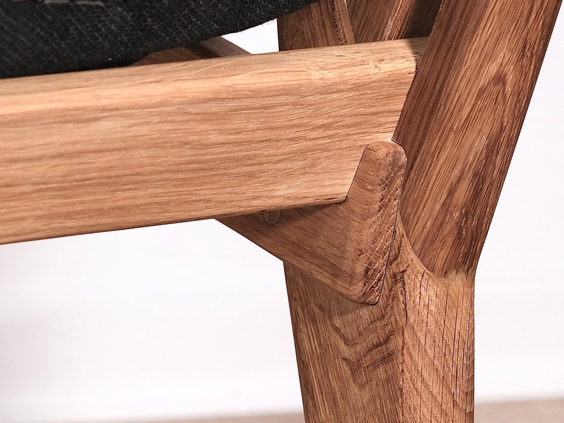 I arbejdet med en skulpturel loungestol, har jeg længe gerne ville forene modsat vinklede for- og bagben med et let udtryk. Det har vist sig udfordrende, særligt med anvendelse af klassisk tapsamlinger, da det kræver uforholdsmæssigt tykke samlinger, når sargene skal sidde på skrå imellem for- og bagben.