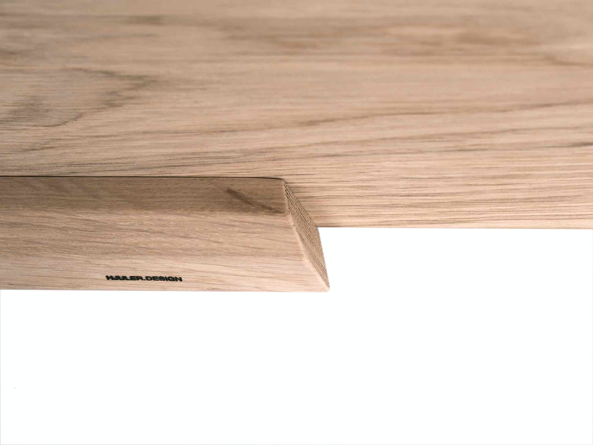 En meget enkel svævehylde, der nemt sættes ind den bjælke, som holder hylden fast til væggen med to skruer.